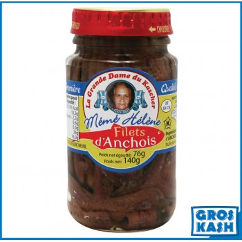 Anchois Filet Casher "Mémé Hélène" à l'huile d'olive 140g. Sous la surveillance du Badatz Ihoud Arabanim.