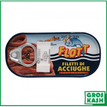Les anchois à l'huile Casher de la marque Flott, 49g.